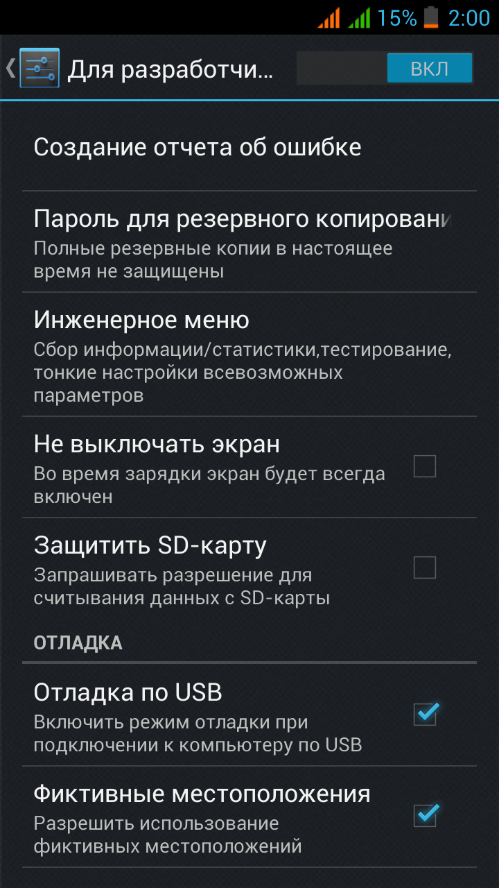 Инженерное меню в меню настроек телефона в пункте Для разработчиков.