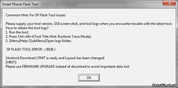 dans82, пишет Запрошенной темы не существует. У меня пришел телефон с 4.1.2 стоковым без рута. Сначала не хотел шиться SP Flash Tools писал BROM ERROR: S_DA_SOC_CHECK_FAIL (3013) Обновил на SP_Flash_Tool_v3.1248.0.96 стало писать 8038 SP FLASH TOOL ERROR Стал прошивать не кнопкой Download а Firmware - Update Только в таком случае нужно что бы все галочки стояли, я из scatter удалил строки c USERDATA и CACHE а прелоадер и DSP_BL из бэкапа подсунул потом даже преладер не стал подсовывать прошился нормально